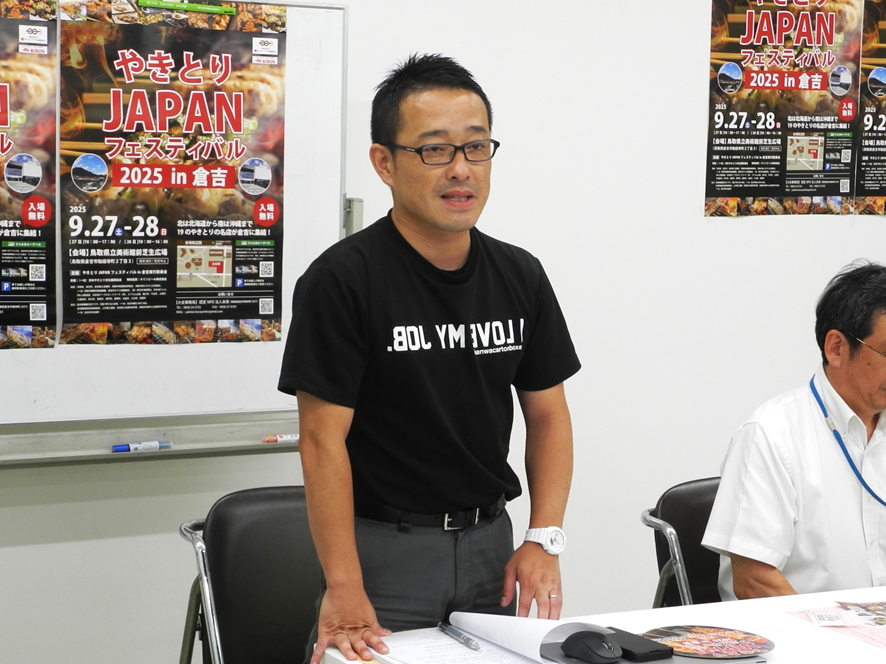 このあと、事務局が駐車場の位置や搬入・搬出、設備の留意点を説明しました。同フェスティバルでは倉吉市の「ふるさと納税品」として、会場で使える500円買い物券(6枚つづり)や、並ばずにお気に入りの焼き鳥が食べられる「優先購入パス付食事券3000円分」などがあります。詳しくは各ふるさと納税品サイトで。