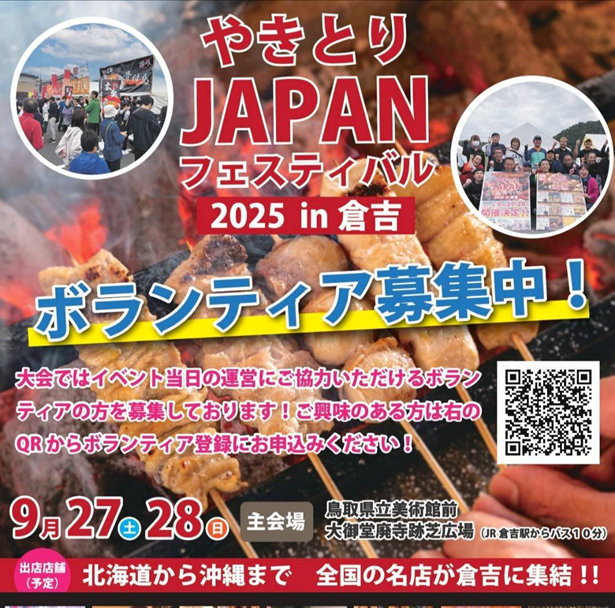 同フェスでは、大会運営を手伝ってくれるボランティアや協賛企業を広く募集中。詳しくは上記チラシのQRコード、またはフェスティバル事務局の認定NPO法人未来(同市東仲町2571,電話0858-24-5725)