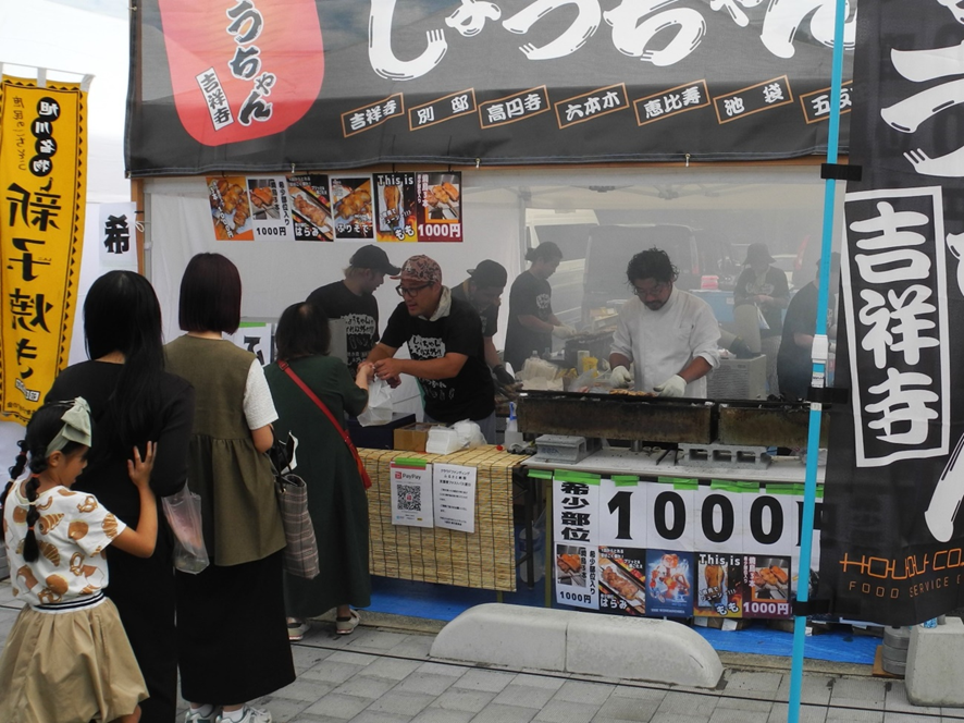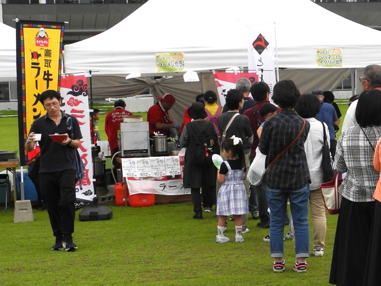 北海道から沖縄まで老舗や新進気鋭の名店など15店、また地元・鳥取県から「とり甚」(倉吉市)「鹿野地鶏」(鳥取市鹿野町)「ときの家」(米子市)「焼鳥とジンギスカン北の大地」(鳥取市)が出店。また、県内のカフェやラーメン店、地ビール、老舗和菓子店、地元の短大や高校など30店・団体が屋台を出しています。