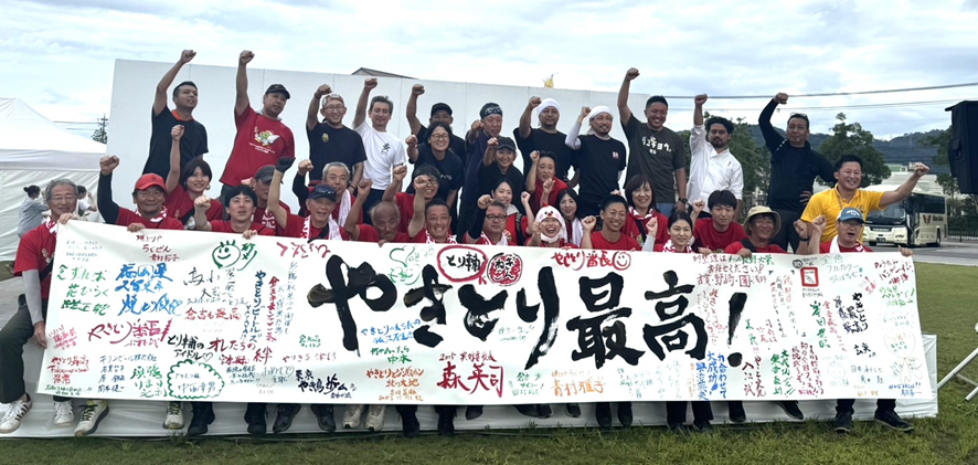森英司実行委員長ら準備に取り組んできた実行委員や、全国の名店・焼き鳥ファンでつくる一般社団法人・日本やきとり文化振興協会(青村雅子代表理事)のスタッフらは、「もともと焼き鳥文化のない土地。不安だったが、こんなに盛り上がるとは驚き」「名実ともに〝鶏取県〟、全国に鳥取らしい焼き鳥文化を広げたい」と語り、来場客数の9万4500人にかけて、「9(く)らよ4(し)に5(こい)して達成した数字」と、関係者が一体となって喜びを分かち合っていました。