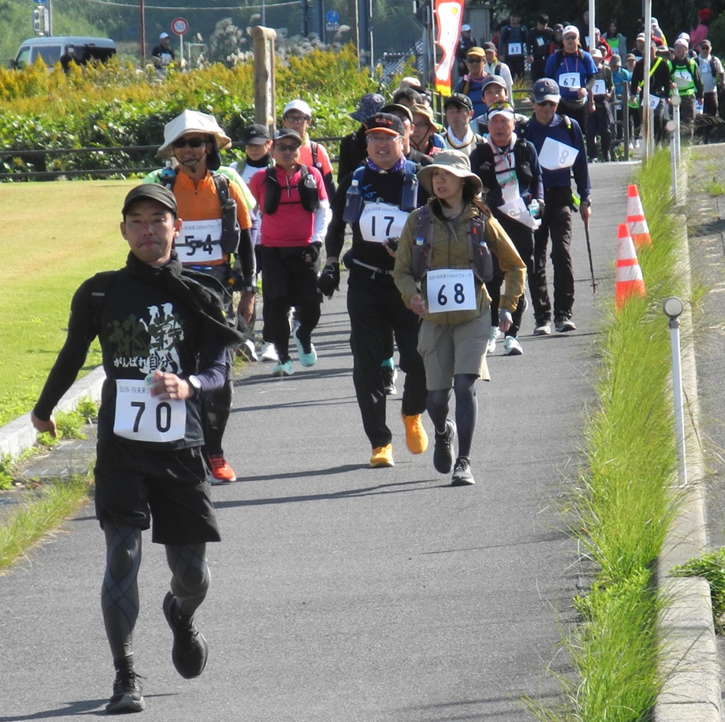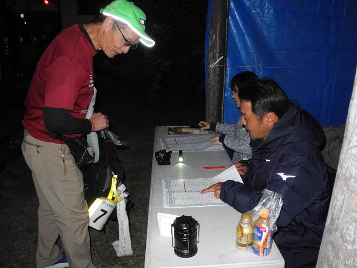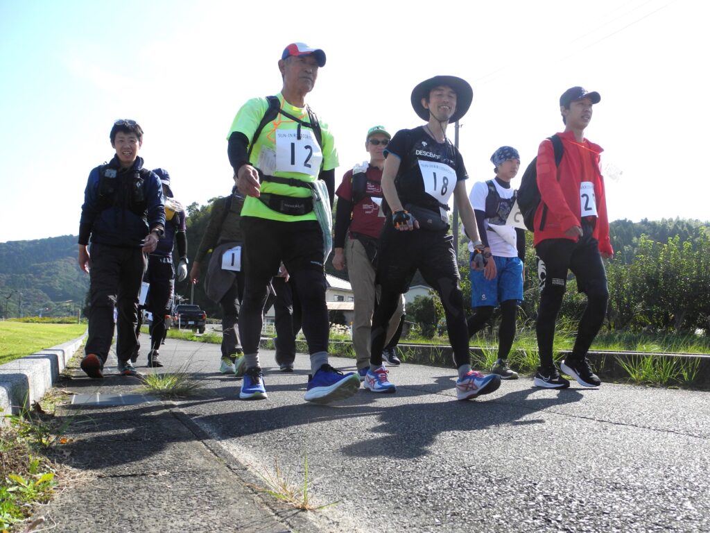 スタートの8日正午時点は青空の広がる絶好のコンディションだったものの、日付が変わる夜半から雨が降り出し、参加者らは用意した雨具を着込んで歩き続けました。
