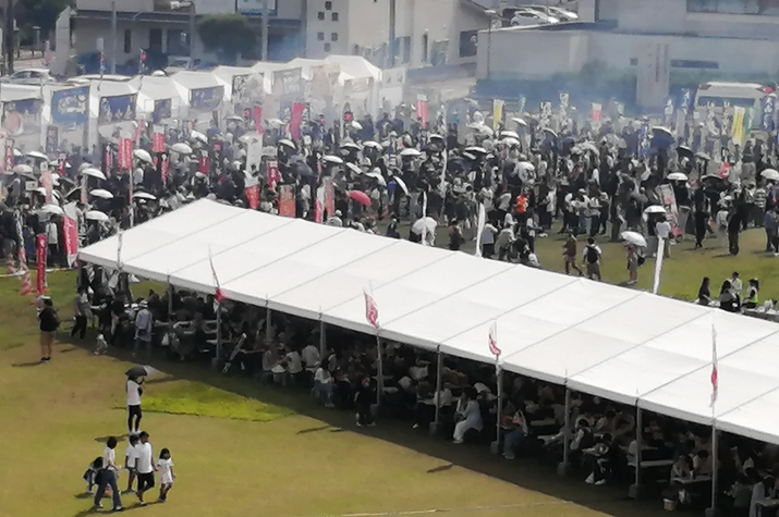 このあと森英司実行委員長が事業報告。「当初の目標は5万人以上、結果は達成率189%の9万4500人。倉吉にやきとり文化がないことで準備期間の2年間、不安もありましたが、やきとり店だけでなくラーメン店、市民ボランティアや地元の高校・短大まで一緒になって取り組んだ。これこそ倉吉ならではの取り組み」と総括しました。