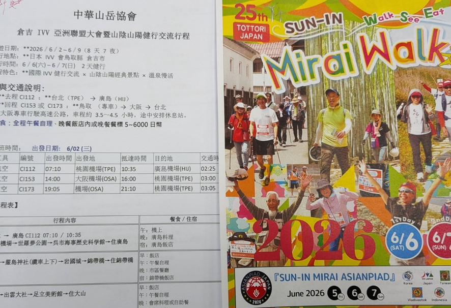 岸田理事長らは8日から11日にかけて台湾を訪れ、友好団体の台湾千里歩道協会、中華民国山岳協会を訪ねてSUN-IN未来ウオークへの参加を打診。両団体からは計50人ほどの参加を予定していることが伝えられました。