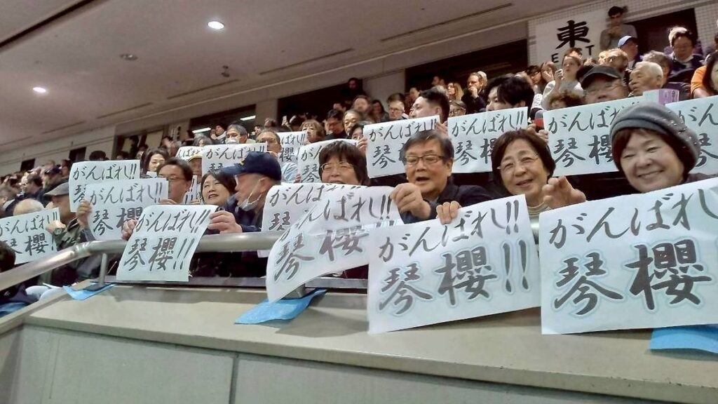 14日付のタイムズで既報しましたが、大相撲の大阪春場所で郷土ゆかりの力士を応援しようと、鳥取県桜友会が観戦ツアーを実施。「がんばれ!琴櫻、伯乃富士」と観客席を陣取り、盛んな声援を送りました。